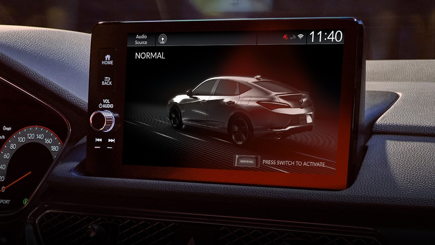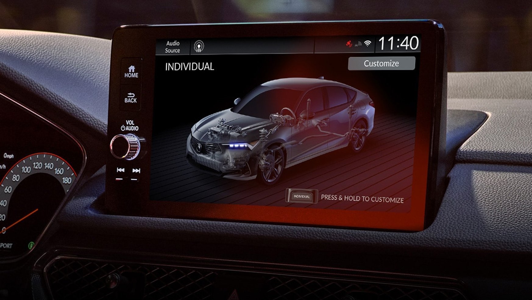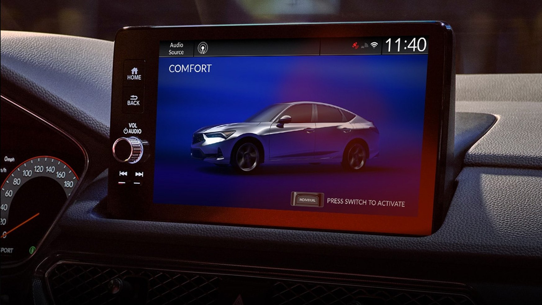 La cabina del Integra cuenta con detalles refinados, como un volante tapizado en cuero, iluminación ambiental en la cabina y asientos delanteros calefaccionados con ajuste eléctrico de 12 posiciones y función de memoria disponible.
