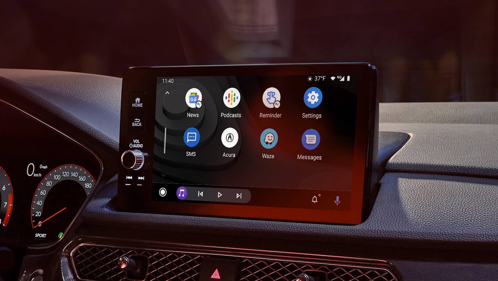 A-Spec design details like aggressive 18-in Shark Gray wheels, black trim accents, a rear spoiler and LED fog lights add a bold design edge to the Integra.